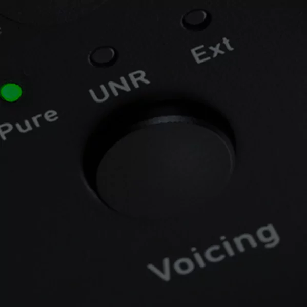 Un “Voicing” est un profil sonore prédéfini des enceintes de la Série A. Vous trouverez à l’arrière deux options sélectionnables, “UNR” et “Pure”. Les paramètres d’égalisation d’adaptation à la pièce peuvent s’utiliser indépendamment du voicing choisi. L’option “Ext” est dédiée aux fonctionnalités offertes par le logiciel A Control avec des options de calibration avancées et de Sonarworks.