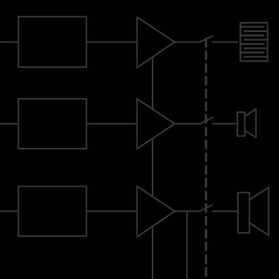 Ce principe est connu depuis des décennies, mais il a fallu du temps pour développer des amplificateurs qui soient capables d’assurer une reproduction sonore parfaite tout en conservant le haut rendement susmentionné. Les amplificateurs et l’alimentation des modèles ADAM sont basés sur cette nouvelle technologie (il n’y a donc plus de transformateurs). Ces éléments combinés aux sections d’entrée et de filtrage de pointe permettent de proposer les meilleures enceintes de monitoring actives multicanal.