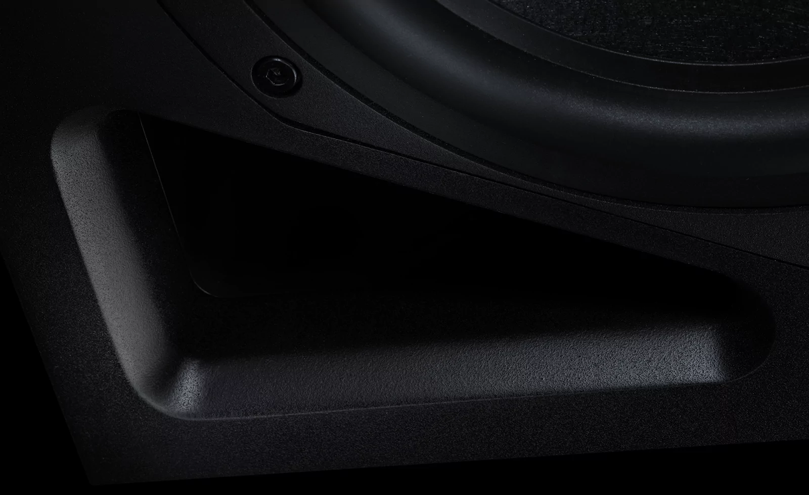 Les enceintes de la Série A possèdent des évents évasés qui optimisent le flux d’air et réduisent les bruits d’écoulement. Chaque centimètre cube ayant son importance, le design d’inspiration industrielle permet d’obtenir une plus grande descente dans les graves et un meilleur rendement dans un baffle plus petit. Les baffles présentent des bords biseautés plus profonds afin de réduire davantage la diffraction et les parois plus épaisses réduisent les vibrations internes indésirables.